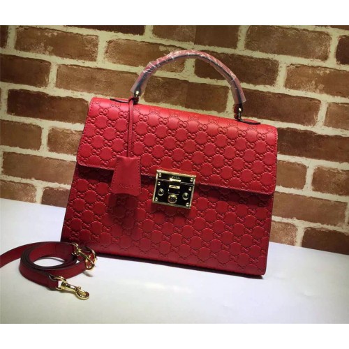 size:35*25*11 cmA new shape from the Padlock collectsion, this medium size top handle bag has our key lock closure pulled straight from the archives, the key is placed in a leather key case that loops around handle. Made in heat debossed Gucci Signature leather resulting in a defined print with a firm texture.Emerald Gucci Signature leatherKey with leather holderOne side gussetFive metal feetInterior zip and smartphone pocketsExterior pocketTop handle Detachable shoulder strap Lock closureMediumCamel microfiber lining with a suede-like finishMade in ItalyGold toned hardware