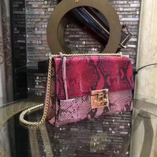 Gucci's Padlock shoulder bag ensures an instant dose of designerfor everyday looks with its glossy python composition. Finished with a gleaming golden lock and chain strap, this is a style icon that will only get better with time.