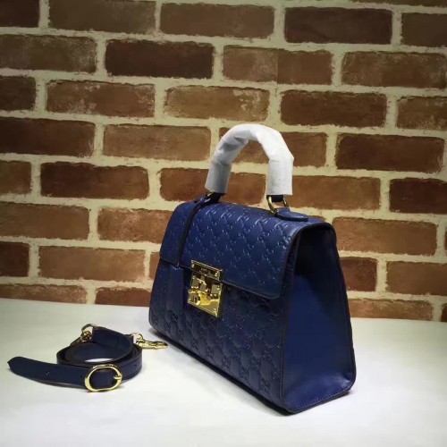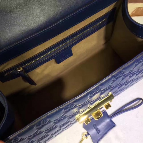 GUCCI PADLOCK SINATURE TOP HANDLE BAG 453188 BLUE 2017