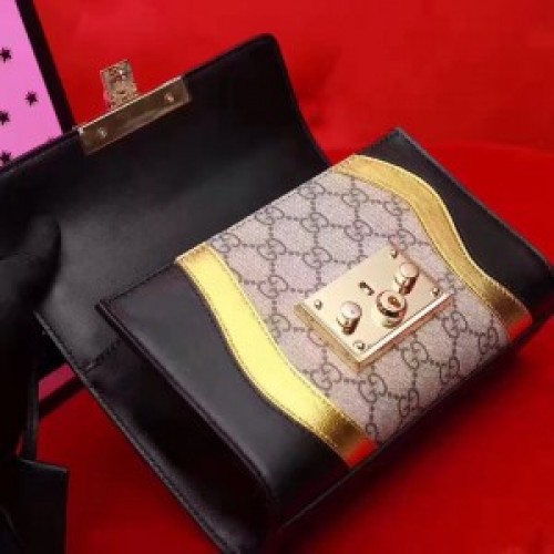 A small structured chain shoulder bag with a key lock closure pulled straight from the archives, the key is placed in a leather key case. The GG Supreme canvas is crafted from a coated microfiber fabric with the GG motif. The abstract design is made from a super soft, delicate leather with a soft shiny metallic leather edge.