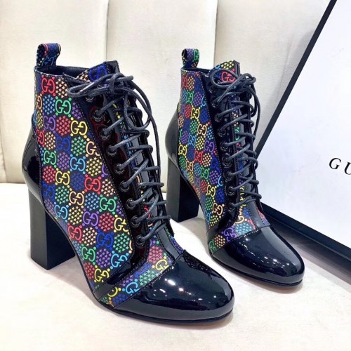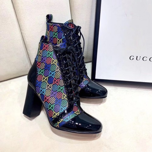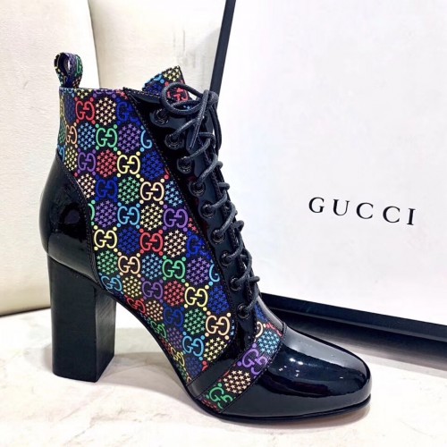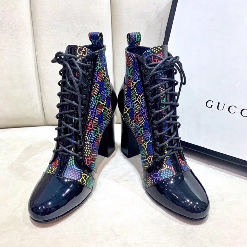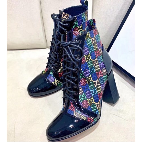 Gucci Patent Black Lace-up Ankle Boots GG Multicolor Stars 2019