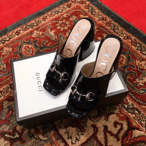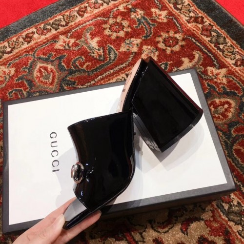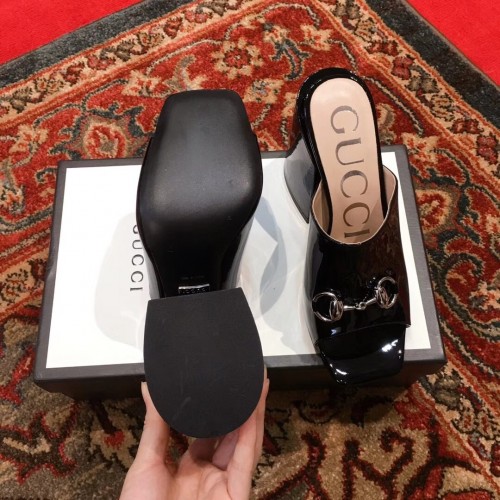 Gucci Patent Leather Horsebit 10cm High-Heel Slides 536773 Black 2019
