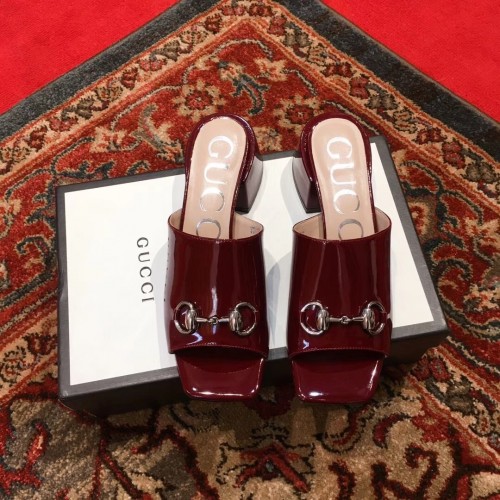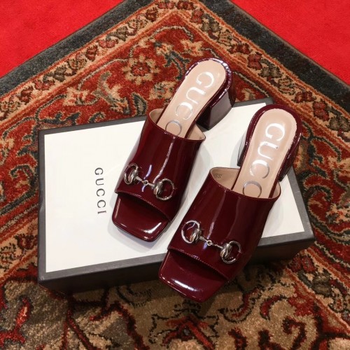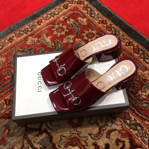 Gucci Patent Leather Horsebit 5cm Mid-Heel Slides 543188 Burgundy 2019