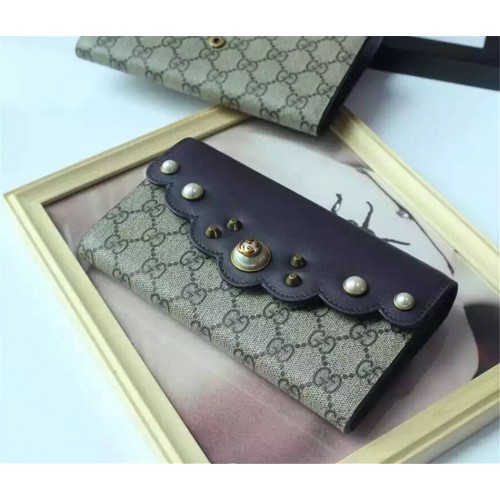 Close: width 19 cm x height 10 cm x 3.5 cm gussetOpen: width 19 cm x height 18 cmgg supreme canvas continental wallet decorated with leather scallop edge. studs and glass pearl studs have been decorated.In beige / ebony GG Supreme canvas (material by the production method in consideration of the environment),leather trimGlass Pearl detail with antique gold tone metal studsMade in ItalySnap closureCard slot x 12, bill holder x 2Separate the inner compartment x2Zip coin pocketClose: width 19 cm x height 10 cm x 3.5 cm gussetOpen: width 19 cm x height 18 cm