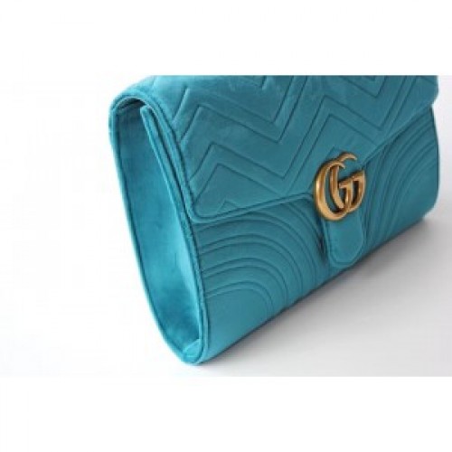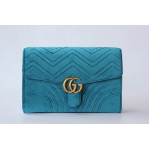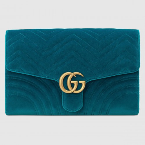 Gucci Petrol Blue GG Marmont Velvet Clutch Bag