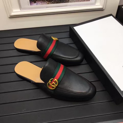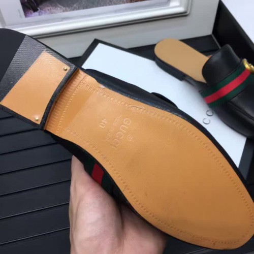 Gucci Pincetown Double G Calfskin Web Strap Men's Slipper 469891 Black 2017