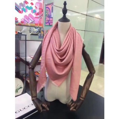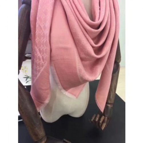 Gucci Pink Silk Wool GG Jacquard Shawl