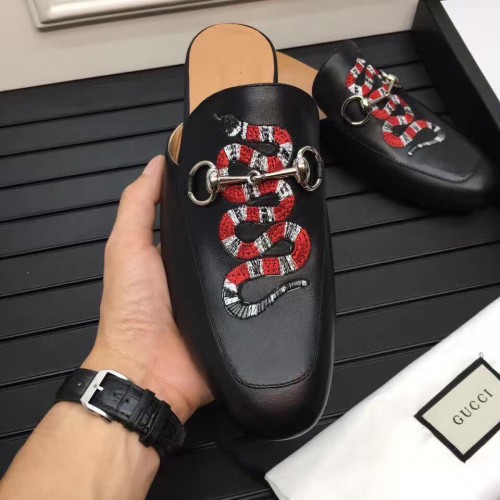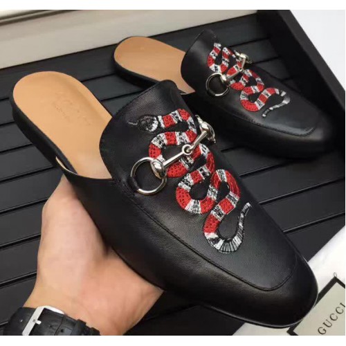 Gucci Pricetown Horsebit Detail Embroidered Snake Men's Slipper Black 2017
