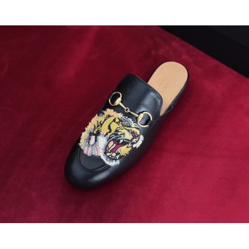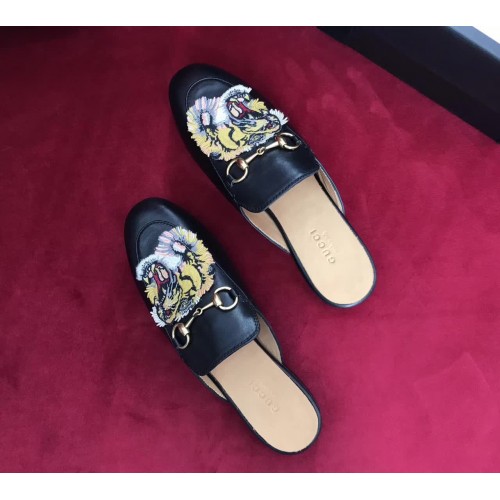 Gucci Princetown Calfskin Horsebit Detail Embroidered Tiger Slipper 2017