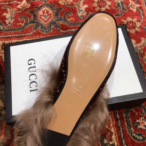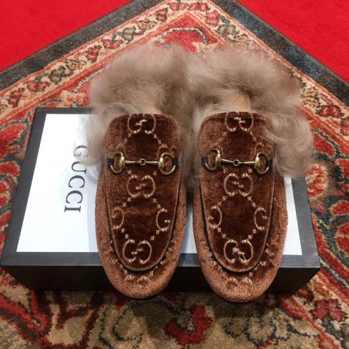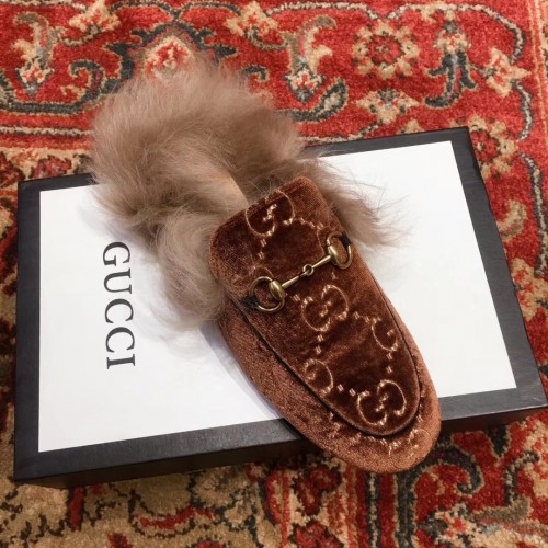 Gucci Princetown GG Velvet Fur Slipper Coffee