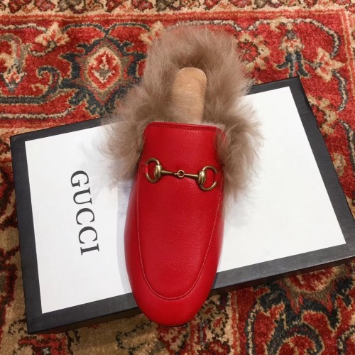 Gucci Princetown Leather Fur Slipper Red