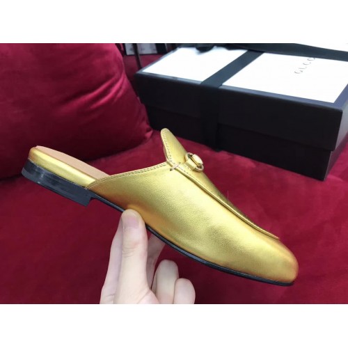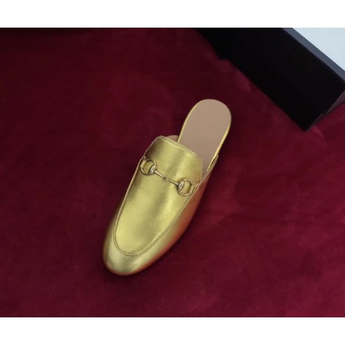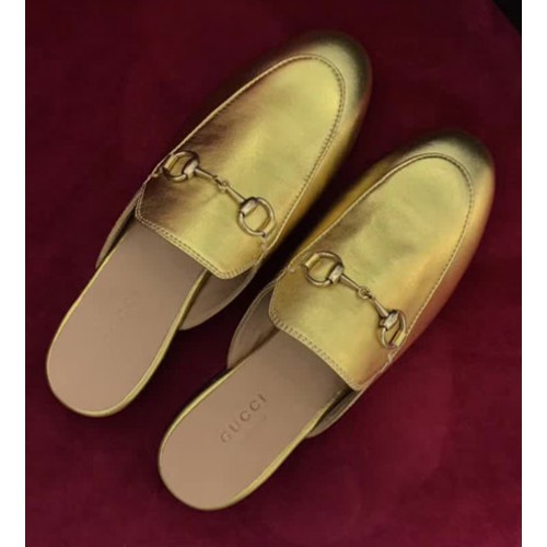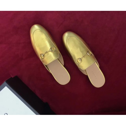 Gucci Princetown Leather Horsebit Detail Slipper 423513 Gold 2017
