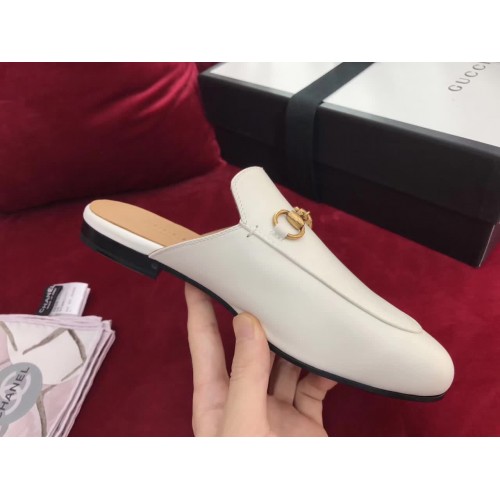 Gucci Princetown Leather Horsebit Detail Slipper 423513 White 2017
