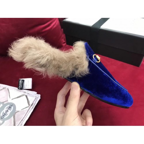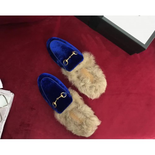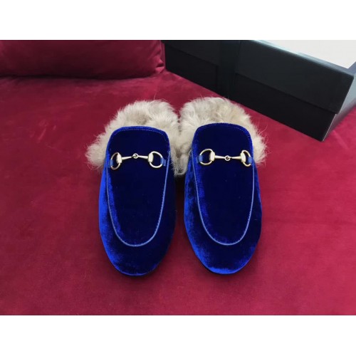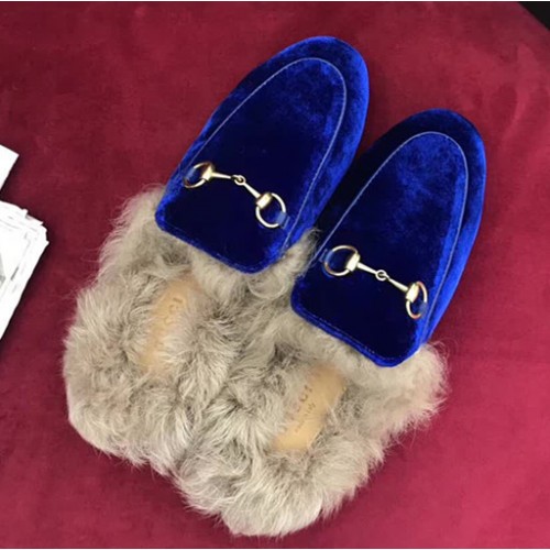 Gucci Princetown Velet Horsebit Detail Slipper With Fur 448657 Blue 20177