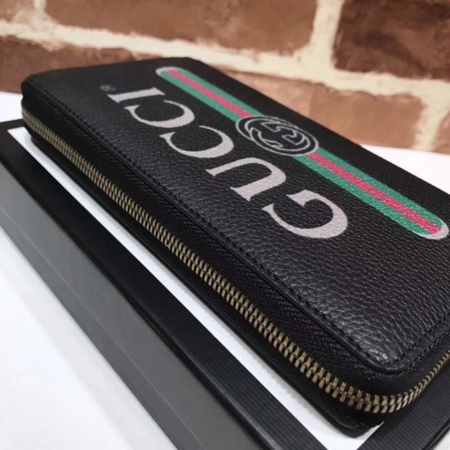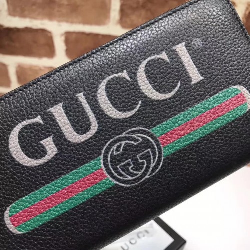 Gucci Print Vintage Logo Grained Leather Zip Around Wallet 496317 Black 2017