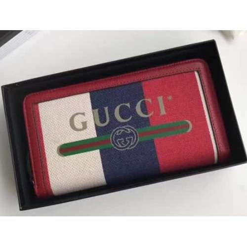 Gucci Print Zip Around Wallet 524790 Sylvie Stripe Canvas