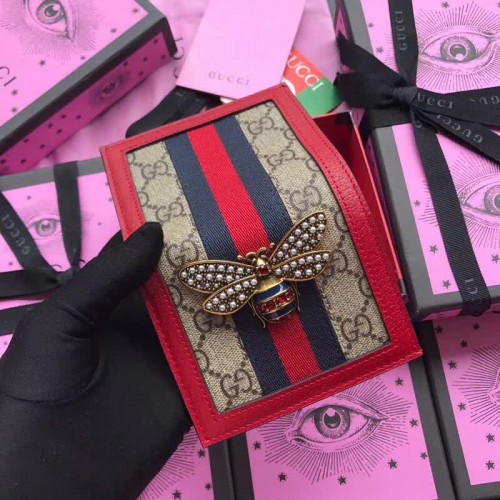 Gucci Queen Margaret GG Supreme Card Case 476072 Red