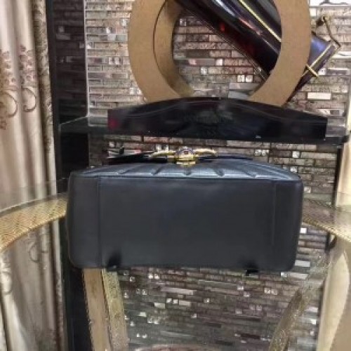 - Black quilted leather