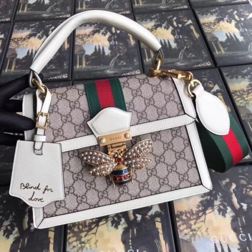 The Queen Margaret line mixes iconic Gucci details with newly established codes. The bee—a historica..