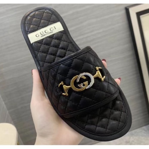 Gucci Quilted Slide Sandals with Interlocking G Horsebit 577680 Leather Black 2019