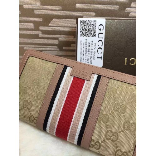 SIZE: 19*10 CM-Sand Original GG canvas with pink leather trim and signature web detail-Hand-painted edges-Twelve card slots and three bill compartments-Zip coin pocket with gusset-Zip around closure-Large-19*10 CM-Made in Italy