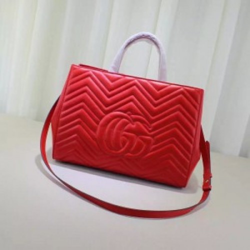 Gucci Red GG Marmont Small Matelasse Top Handle Bag
