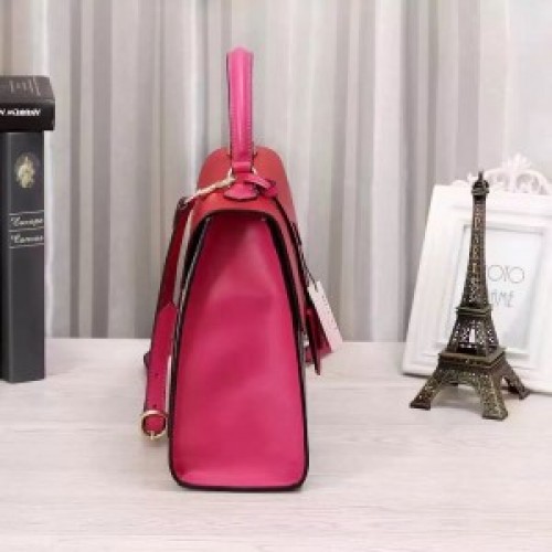 A medium structured top handle bag has our key lock closure pulled straight from the archives, the key is placed in a leather key case. The shoulder strap is attached to the top handle for a simpler look that echoes a briefcase.