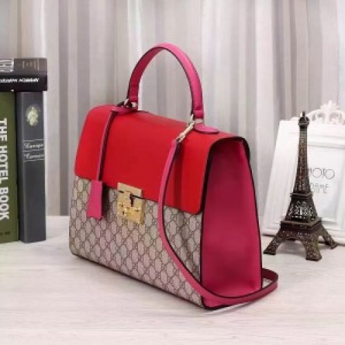 Gucci Red Medium Padlock GG Supreme Top Handle Bag