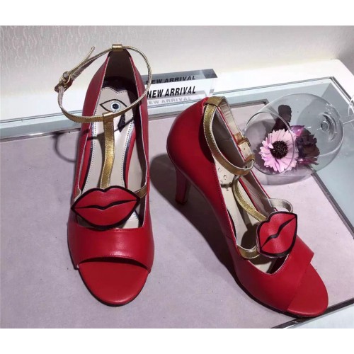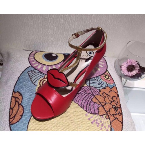 size:34-US 435-US 4.536-US 5.537-US 638-US 739-US 7.5The soft hand-embroidered mouth appliqué, a new symbol of the Fall Winter collectsion, stands out against our smooth black and metallic gold leather pump.Hibiscus red leather with gold metallic leather t-strapAdjustable ankle strapT-strapEmbroidered mouth appliquéMade in Italy