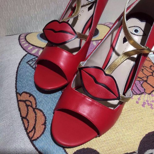 Gucci Red mouth embroidered leather pump 431027