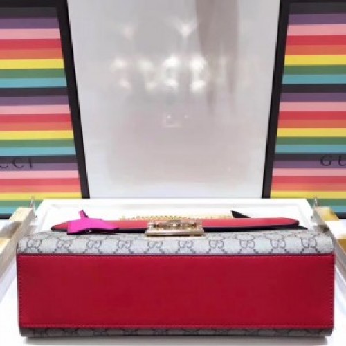 Gucci Red Padlock Medium GG Supreme Shoulder Bag