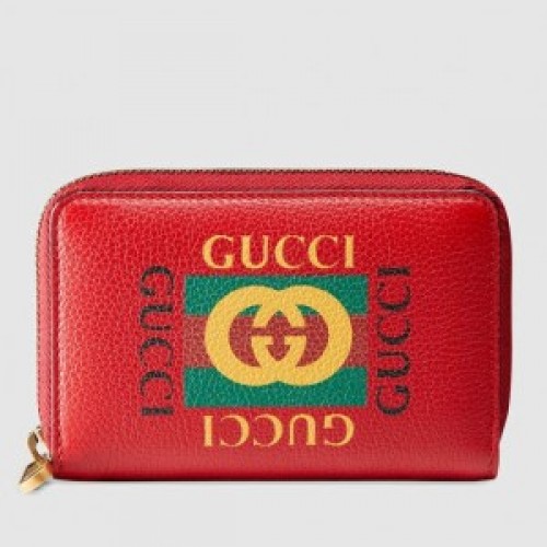 Gucci Red Print Leather Card Case