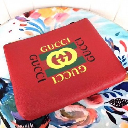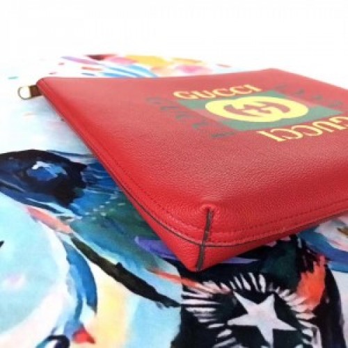 Tags: Gucci Red Print Leather Medium Portfolio, 636, Portfolio Pouch
