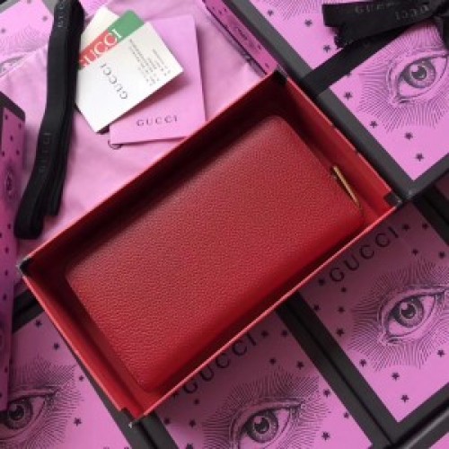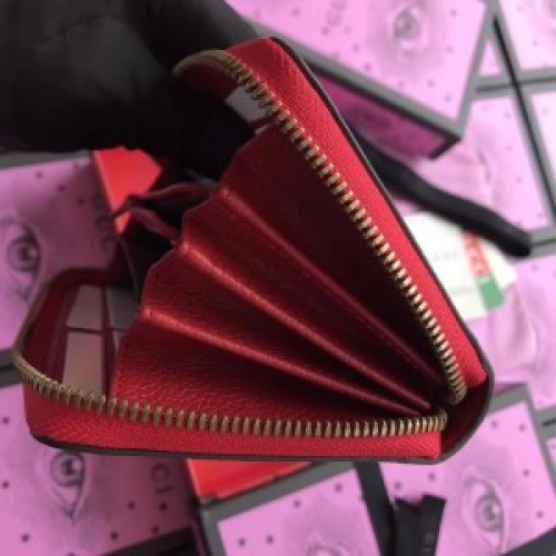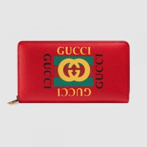 Inspired by vintage prints from the eighties, the Gucci logo is brought to the forefront. The retro-style motif is presented on the front of a zip around wallet in supple, textured leather.