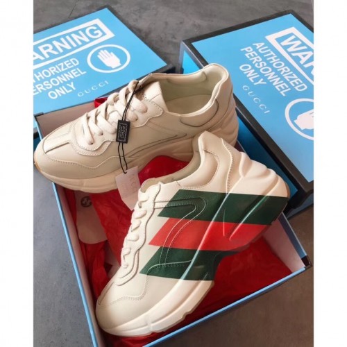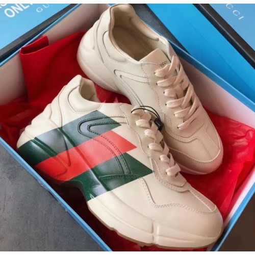 Gucci Rhyton Leather Sneakers Green/Red Web Print Ivory 2019