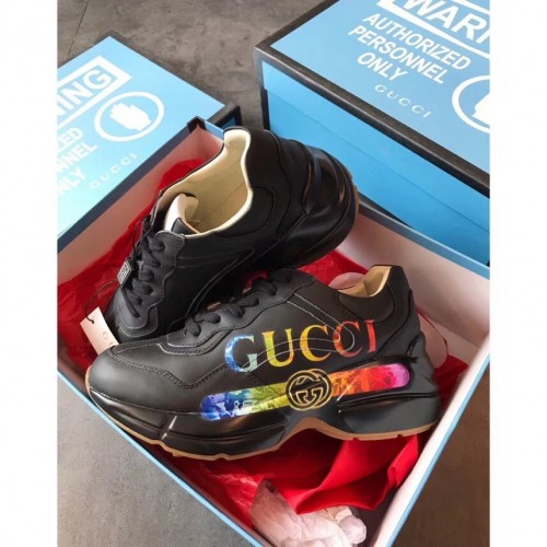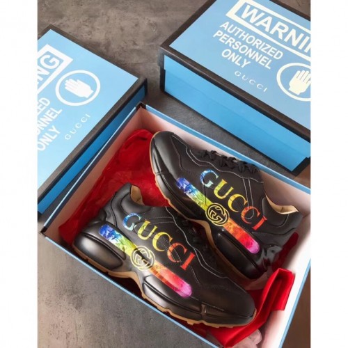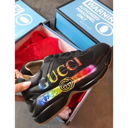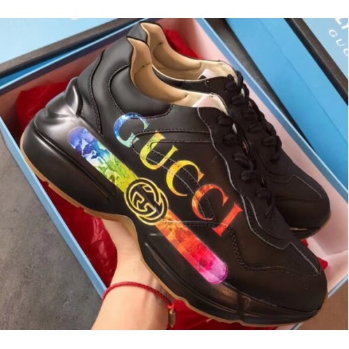 Gucci Rhyton Leather Sneakers Iridescent Vintage Logo Black 2019