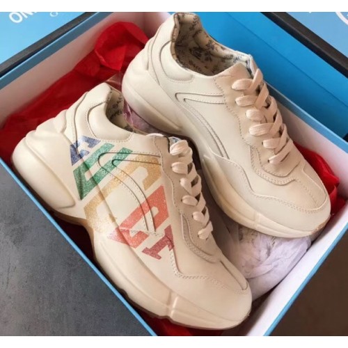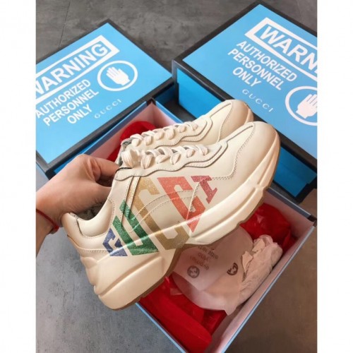 Gucci Rhyton Leather Sneakers Rainbow Glitter Logo 2019