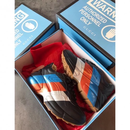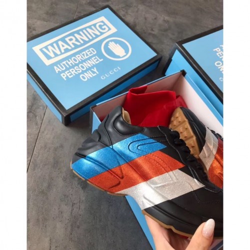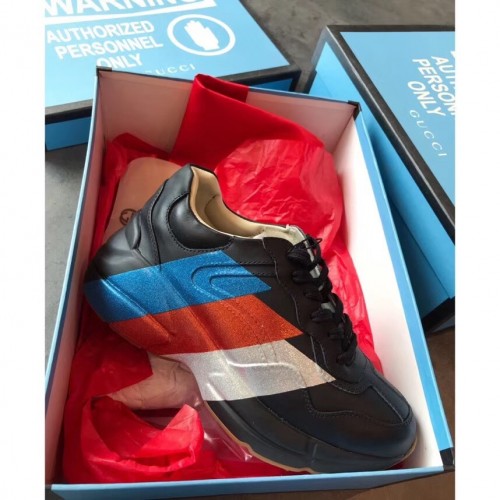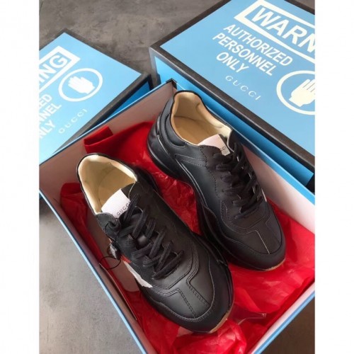 Gucci Rhyton Leather Sneakers Web Print Black 2019