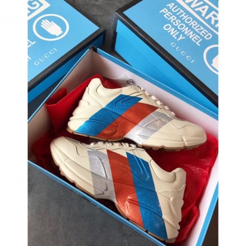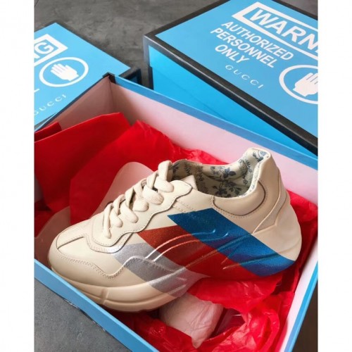 Gucci Rhyton Leather Sneakers Web Print Ivory 2019