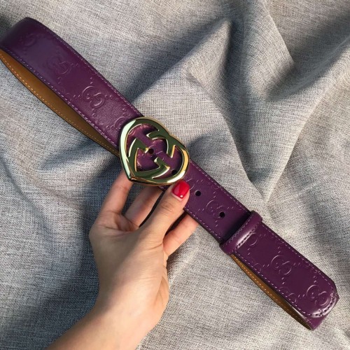 Our interlocking G buckle on our classic belt, made in heat debossed Gucci Signature leather resulting in a defined print with a firm texture.Gucci Signature leather with leather detailInterlocking G buckleHand-painted edges3.5 cm widthMade in Italy