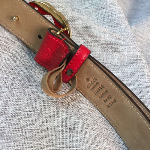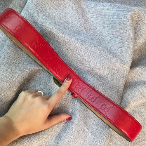 Our interlocking G buckle on our classic belt, made in heat debossed Gucci Signature leather resulting in a defined print with a firm texture.Gucci Signature leather with leather detailInterlocking G buckleHand-painted edges3.5 cm widthMade in Italy