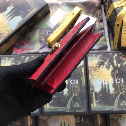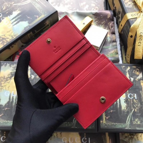 Crafted from debossed leather with the distinctive GG motif, the card case is embellished with a metal cat head with crystal eyes, introduced for the first time in the Cruise 2019 collectsion. Felines of different forms continue to hold strong meaning to the House and are reimagined in new iterations season after season.