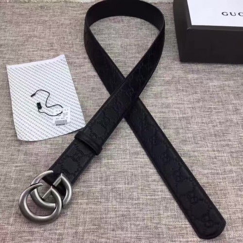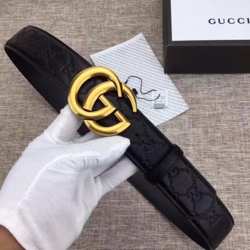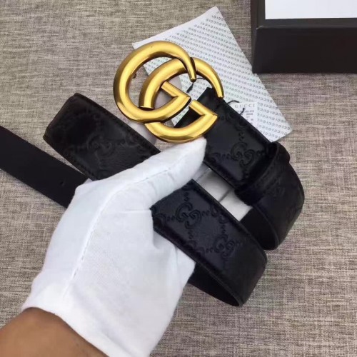 GUCCI SIMPLE BUCKLE GG TEXTURED CALFSKIN BELT GOLD/SLIVER 2017