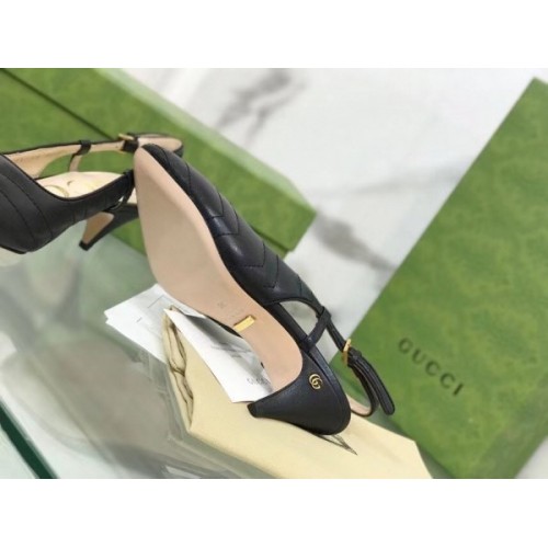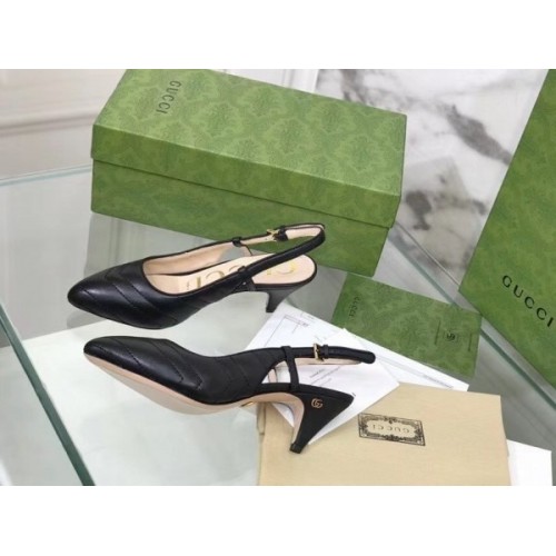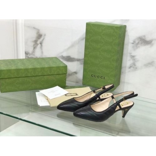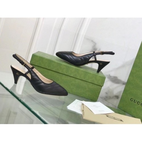 Gucci Slingback Pumps In Black Matelasse Leather