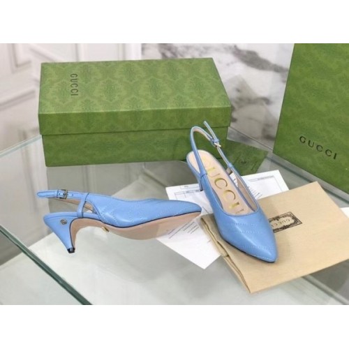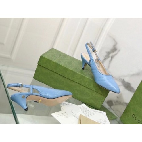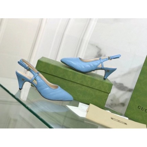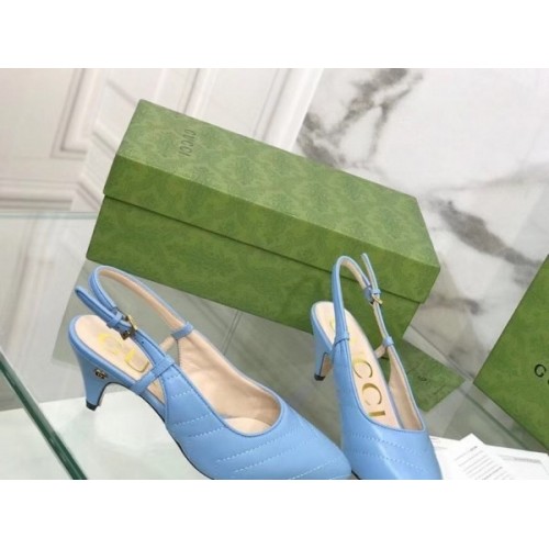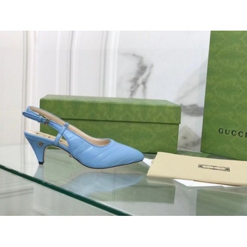 Gucci Slingback Pumps In Blue Matelasse Leather
