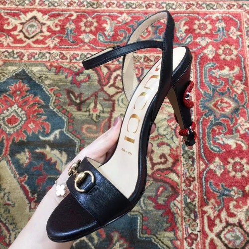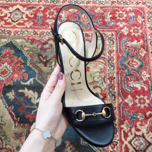 Gucci Snake Heel 9cm Horsebit Leather Sandals Black 2019