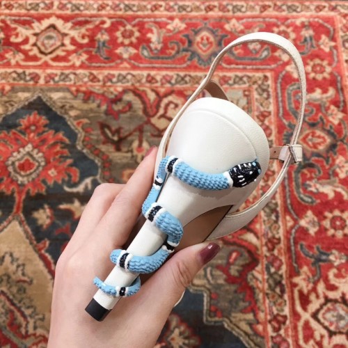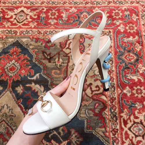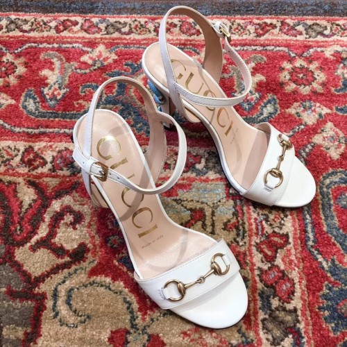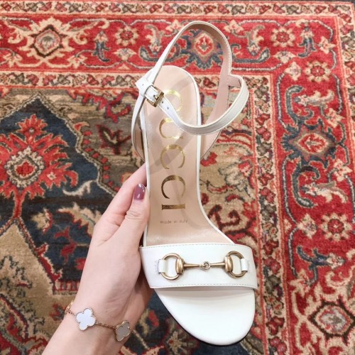 Gucci Snake Heel 9cm Horsebit Leather Sandals White 2019