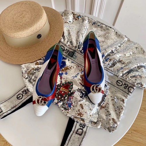 Gucci Snakeskin Pumps with Crystal Double G White 2019