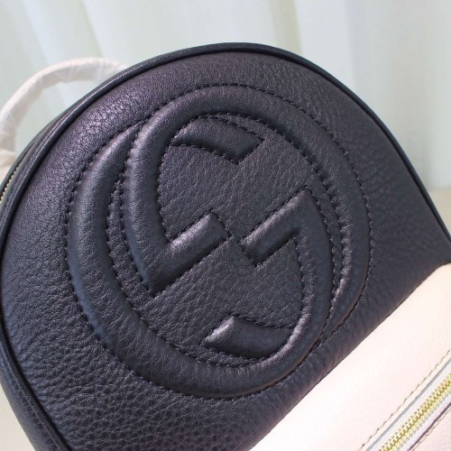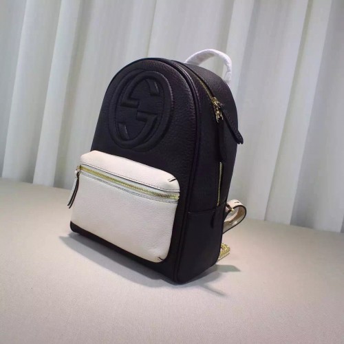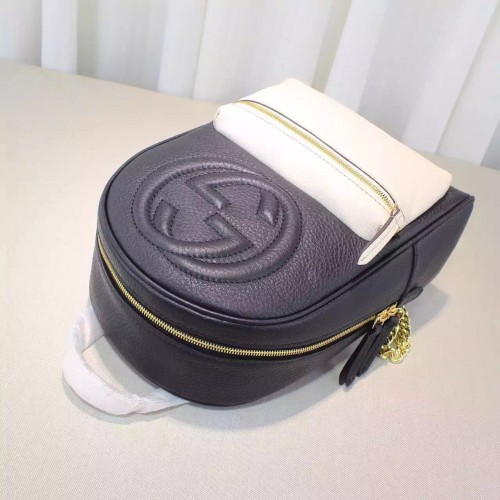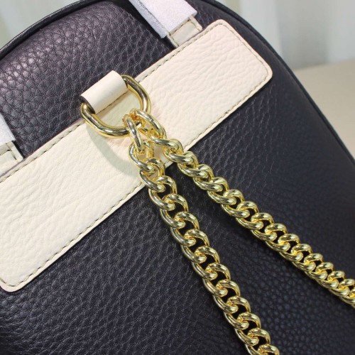 size:22.5*31*9.5 CMOur Soho backpack with chain straps and zip top closure. Made in our resistant, textured leather.Embossed interlocking GFront zip pocketInterior open pocket and smartphone pocketsTop handle with 2" dropChain shoulder strapsCotton liningMade in ItalyGold toned hardware