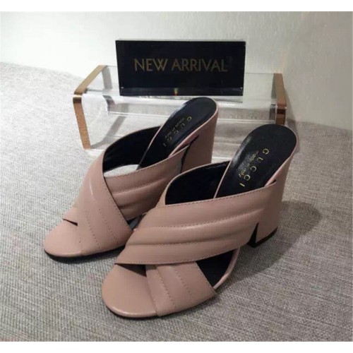 Gucci Spring 2016 lambskin Leather crossover sandal nude pink leather